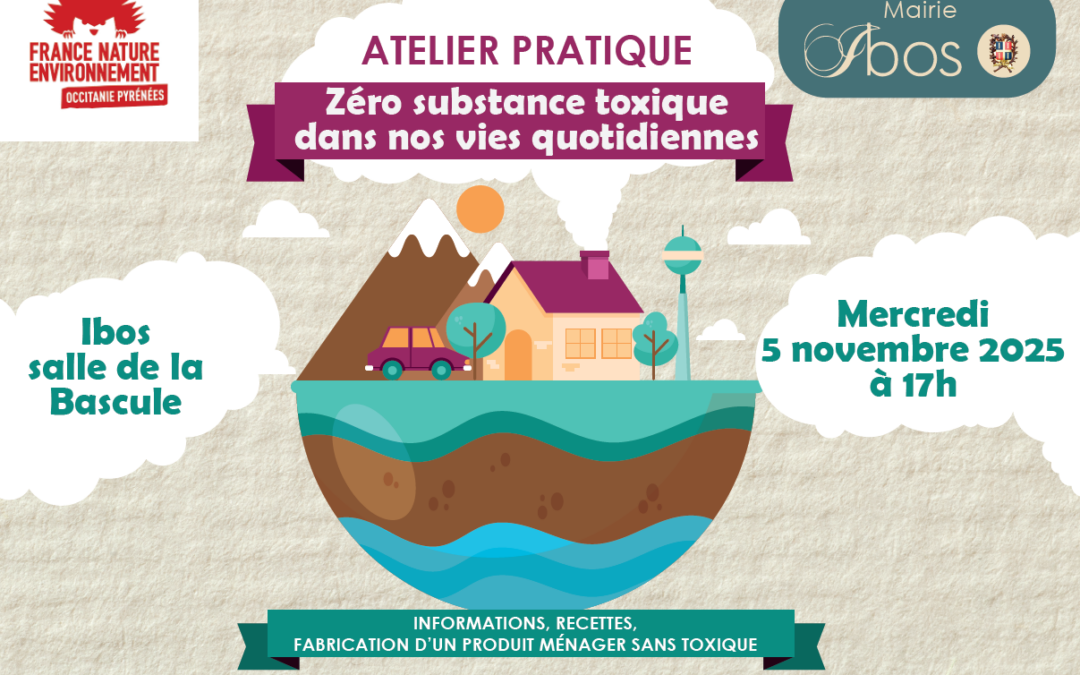 France Nature Environnement vous propose un atelier pratique « zéro substance toxique dans nos vies quotidiennes » mercredi 5 novembre à 17h dans la salle de la Bascule (à côté de la mairie).